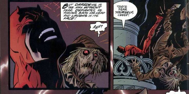 desuden viste Daredevils beherskelse af sin egen frygt sig at være, hvordan han tog en anden af Batmans legendariske fjender ned, da de to mødtes i en efterfølger, Batman / daredevil: konge af Ny York. I dette eventyr, skrevet af Alan Grant og tegnet af Eduardo Barreto, flyttede Gotham Citys fugleskræmsel til Ny York i håb om at overtage Kingpins operationer ved at hjernevaske sine mænd med sit sind, der kontrollerede stoffer. Planen virkede chokerende, og han var rasende over, at en udklædte freak overtog hans by.