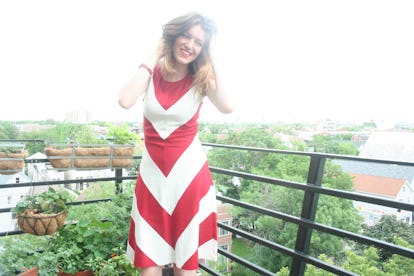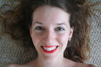 Deci, ca Hercule cu care se confruntă Hydra, am ținut respirația mea și a mers pentru ea, club swinging. Bunica mi-a spus să nu port niciodată roșii pe bază de albastru și o ascult mereu pe bunica, așa că am optat pentru cel mai frumos ruj portocaliu-roșu de la Elizabeth Arden, numit Marigold. (În știri pe jumătate interesante, pe jumătate deprimante, acesta este oficial primul ruj roșu frumos pe care l-am deținut vreodată.) Mi-am umplut cu grijă forma gurii; am șters ca un profesionist; am ieșit din baie pentru a-i arăta iubitului meu, care a răspuns, groază de orori: „mă bucur că nu este aspectul tău de zi cu zi.”